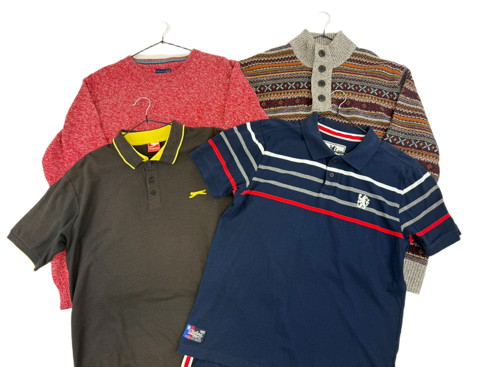Lot 1 – Men’s Branded Clothing Bundle XL–XXL – Mantaray Scandi Jumper, Slazenger Polo, Chelsea FC Polo Reseller Lot x4