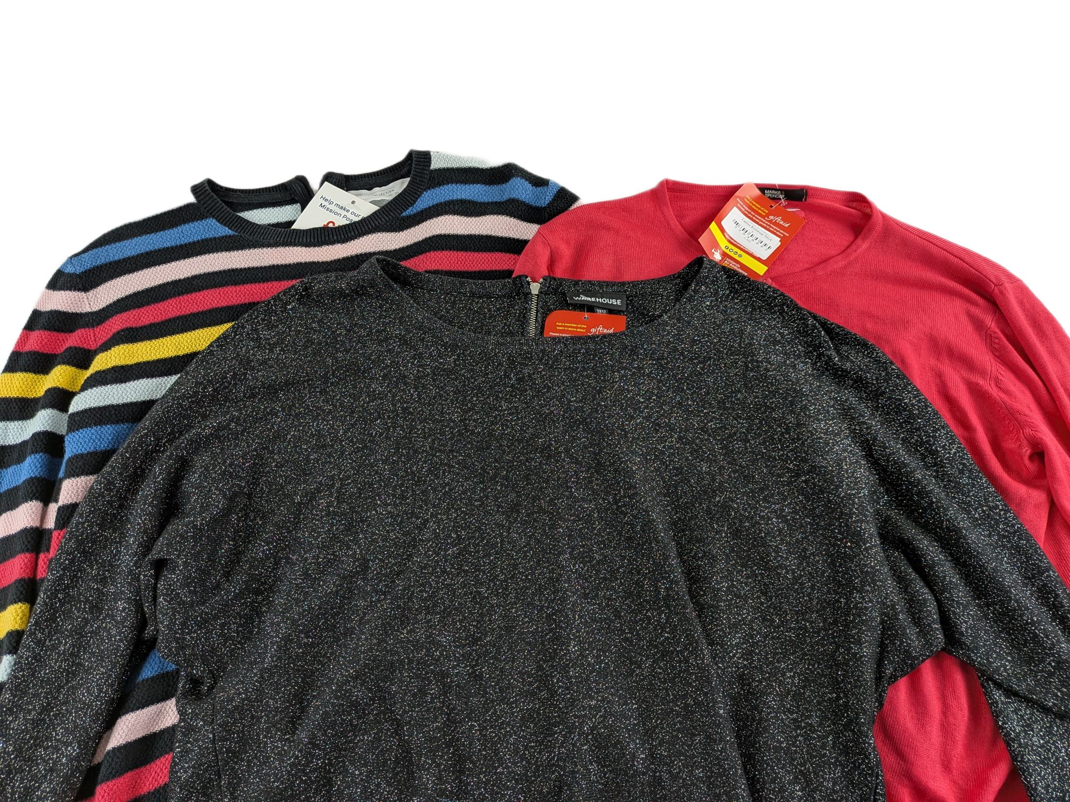 Lot 28 – Women’s Knitwear Bundle – Warehouse Glitter Jumper, M&S Cardigan & John Lewis Striped Knit Mixed Sizes Reseller Lot x3